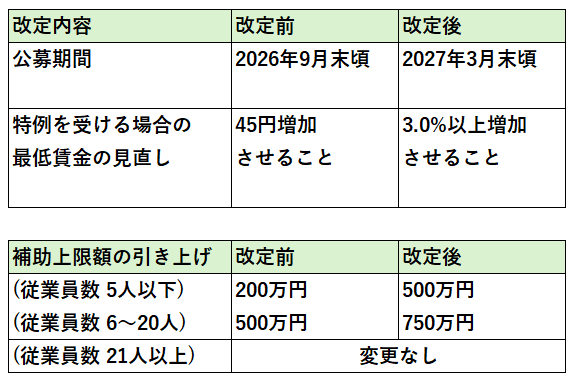 今回の改定により、申請期間の延長や補助上限額の引き上げなど、